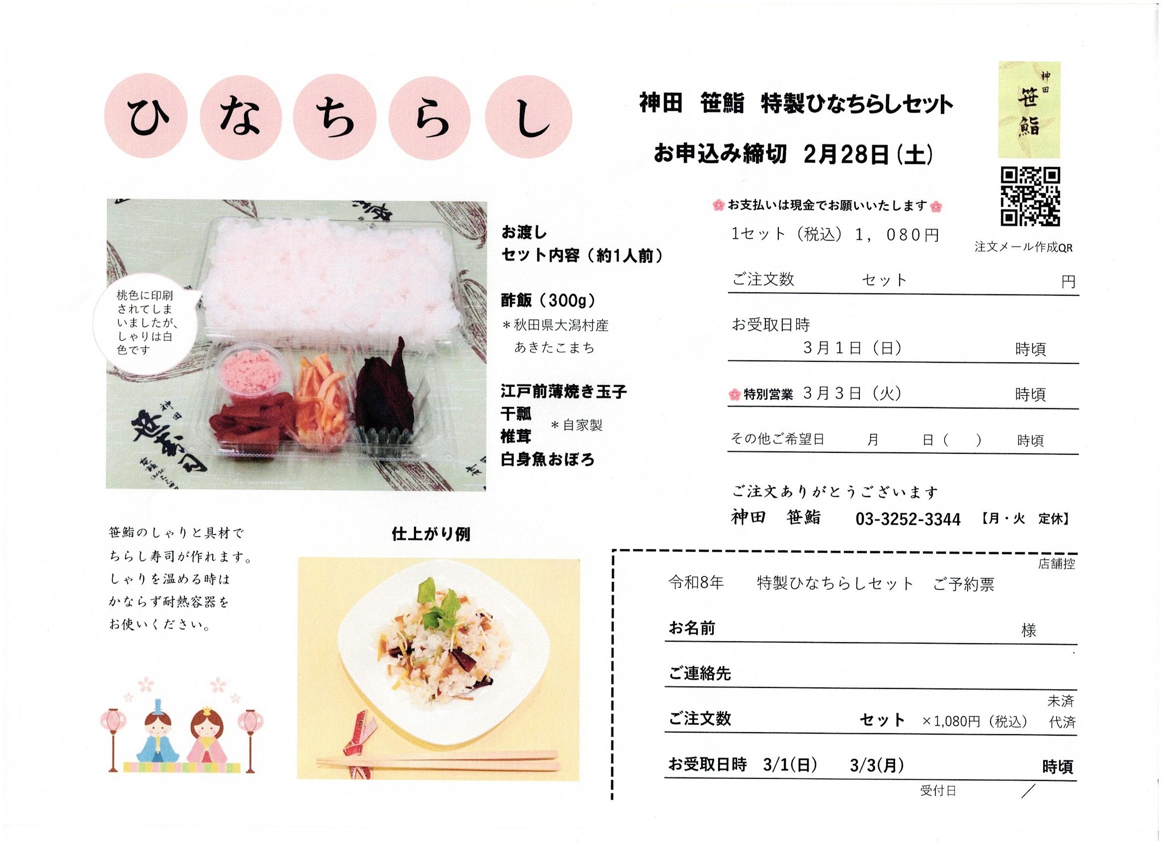 今年も恒例の「ひなちらし」を販売いたします。