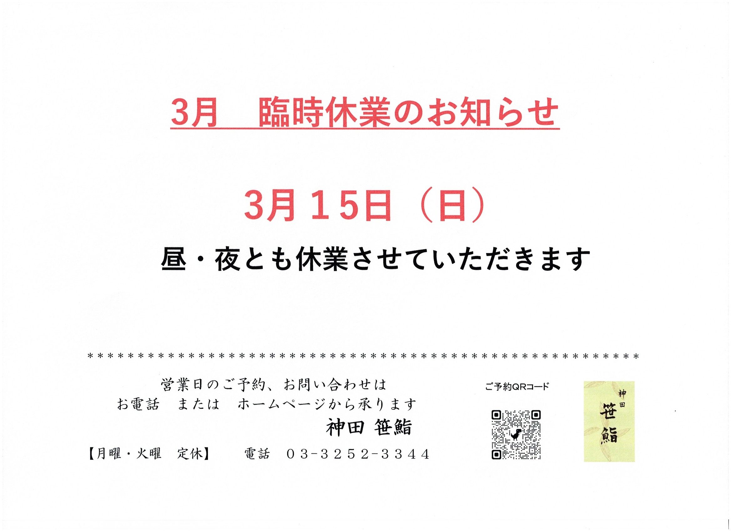 臨時休業のお知らせ